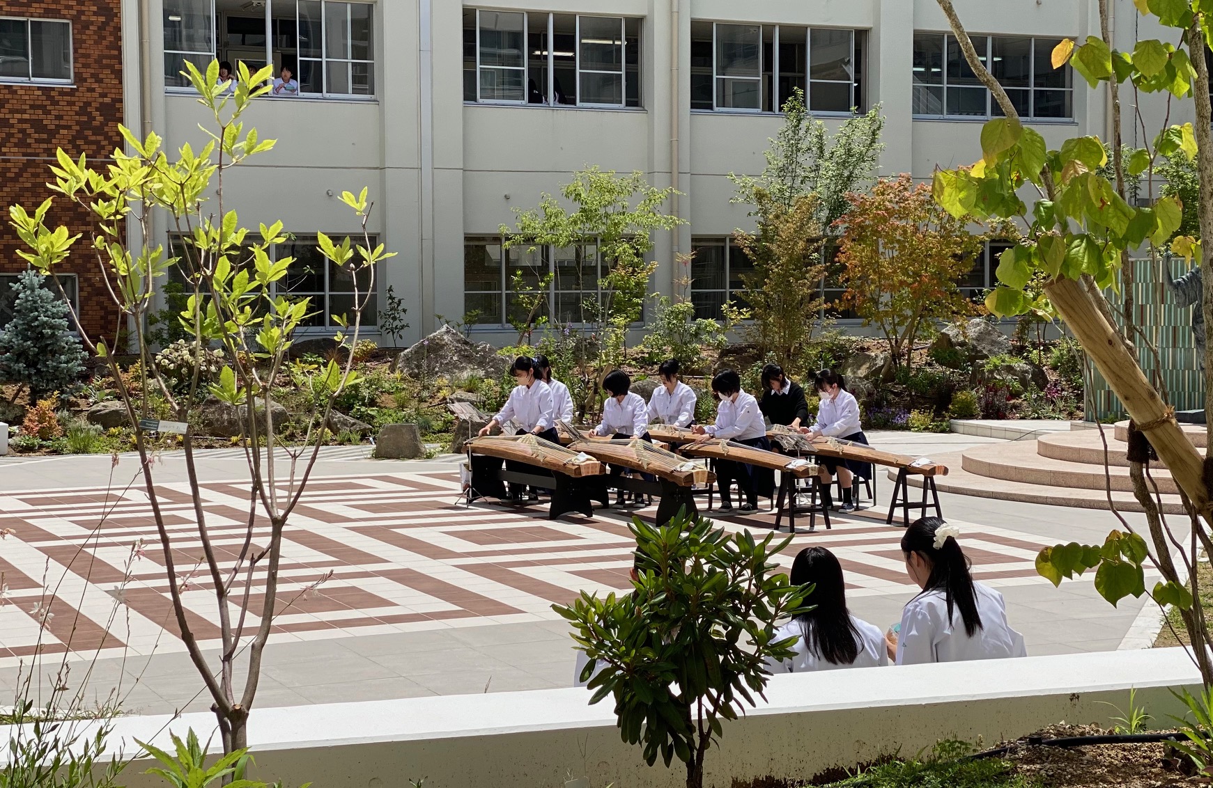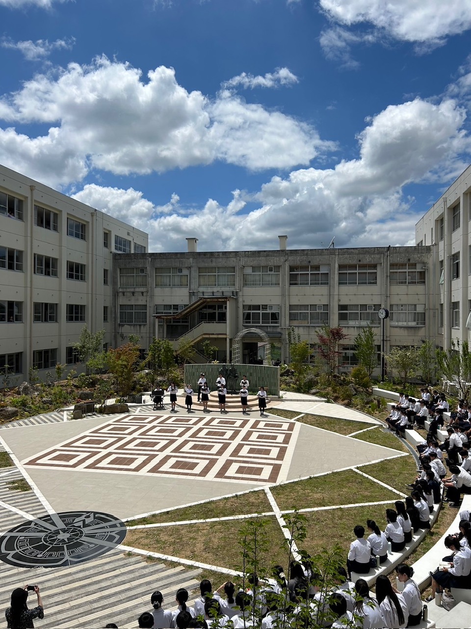 記念募金により造られた中庭を、これからも生徒が活躍できる場所、楽しめる場所として使わせて頂きたいと思います。